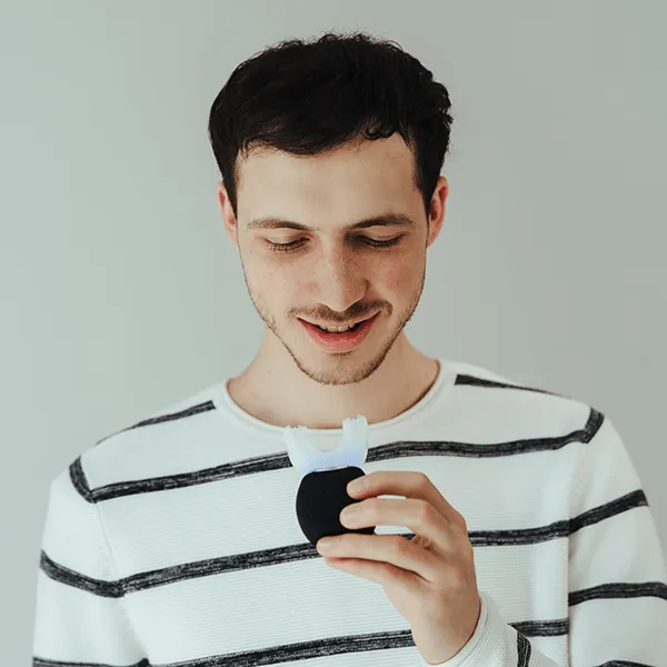 Introducing an extraordinary dental hygiene solution: the world's first mouthpiece designed to thoroughly clean every part of your teeth. Utilizing extra soft silicone bristles, this innovative toothbrush covers the entire surface of your teeth, ensuring a comprehensive clean.